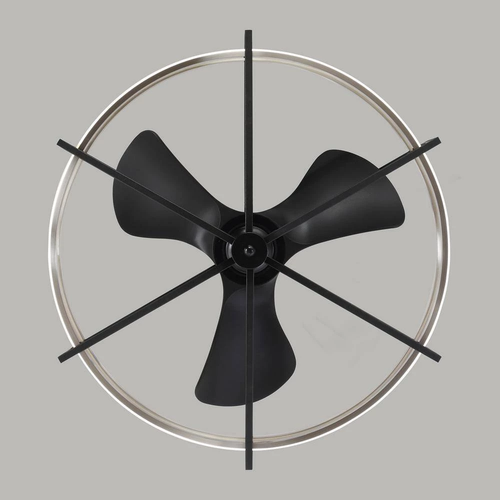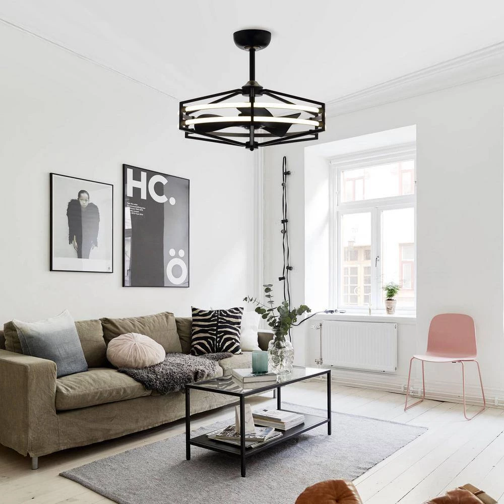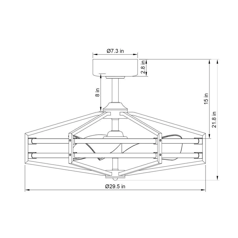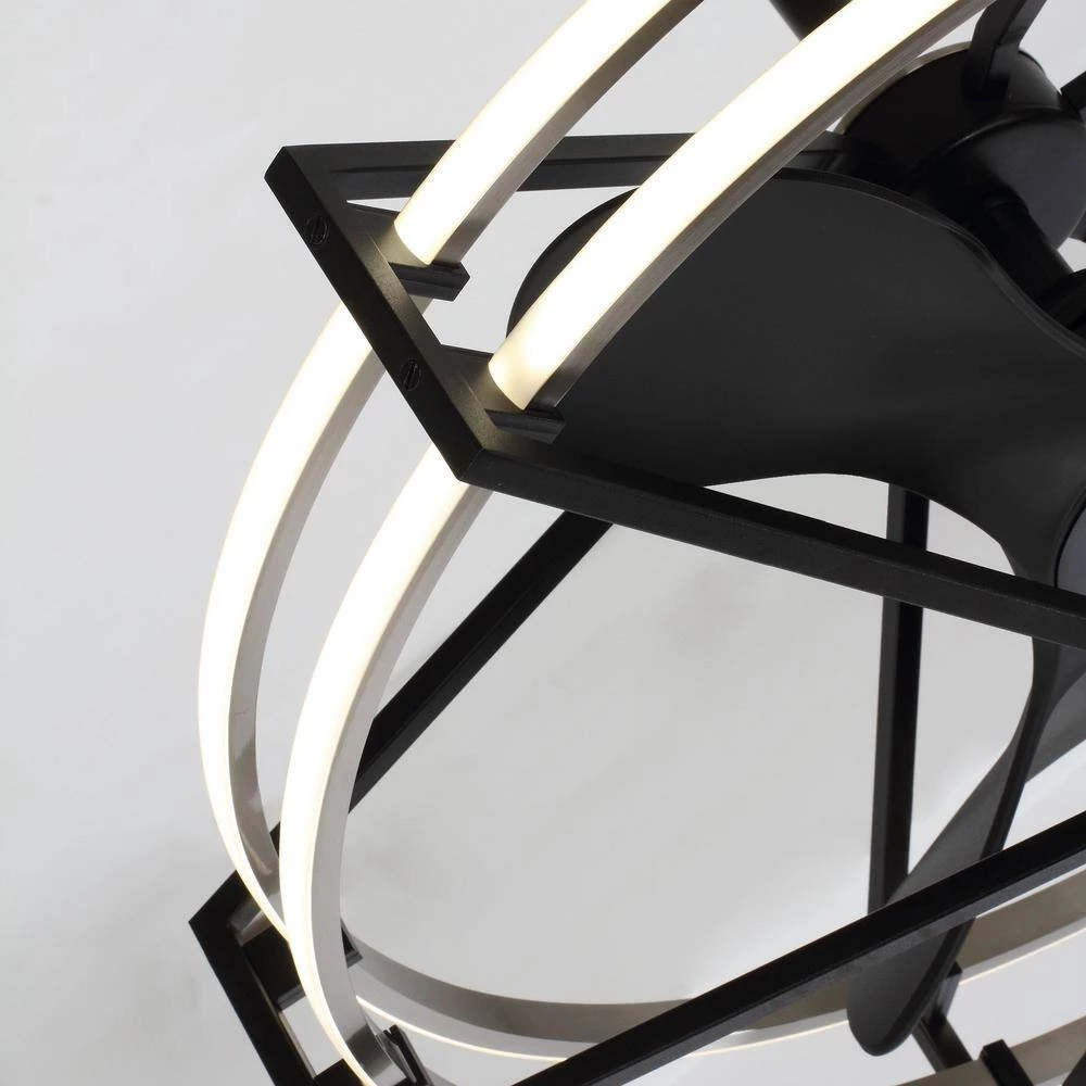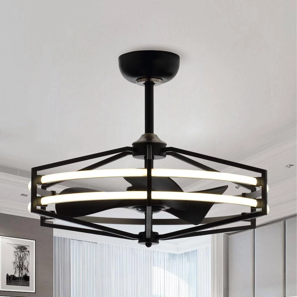 The 29 in. Ceiling Fan offers a regal elegance to your home with its black finish. The two 25-Watt LED add the finishing touch. Add airflow, and illuminate any area with the modern style of this cage ceiling fan. The fandelier comes in a black finish, while the 3 blades feature a matching black finish and a 29 in. span. The DC motor features 6 speeds with an integral reverse function. The handy remote control provides independent turn-on and off light operation and speed control.