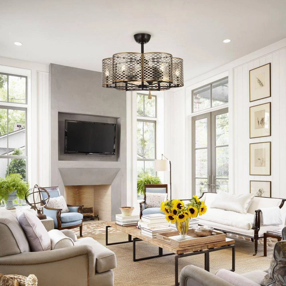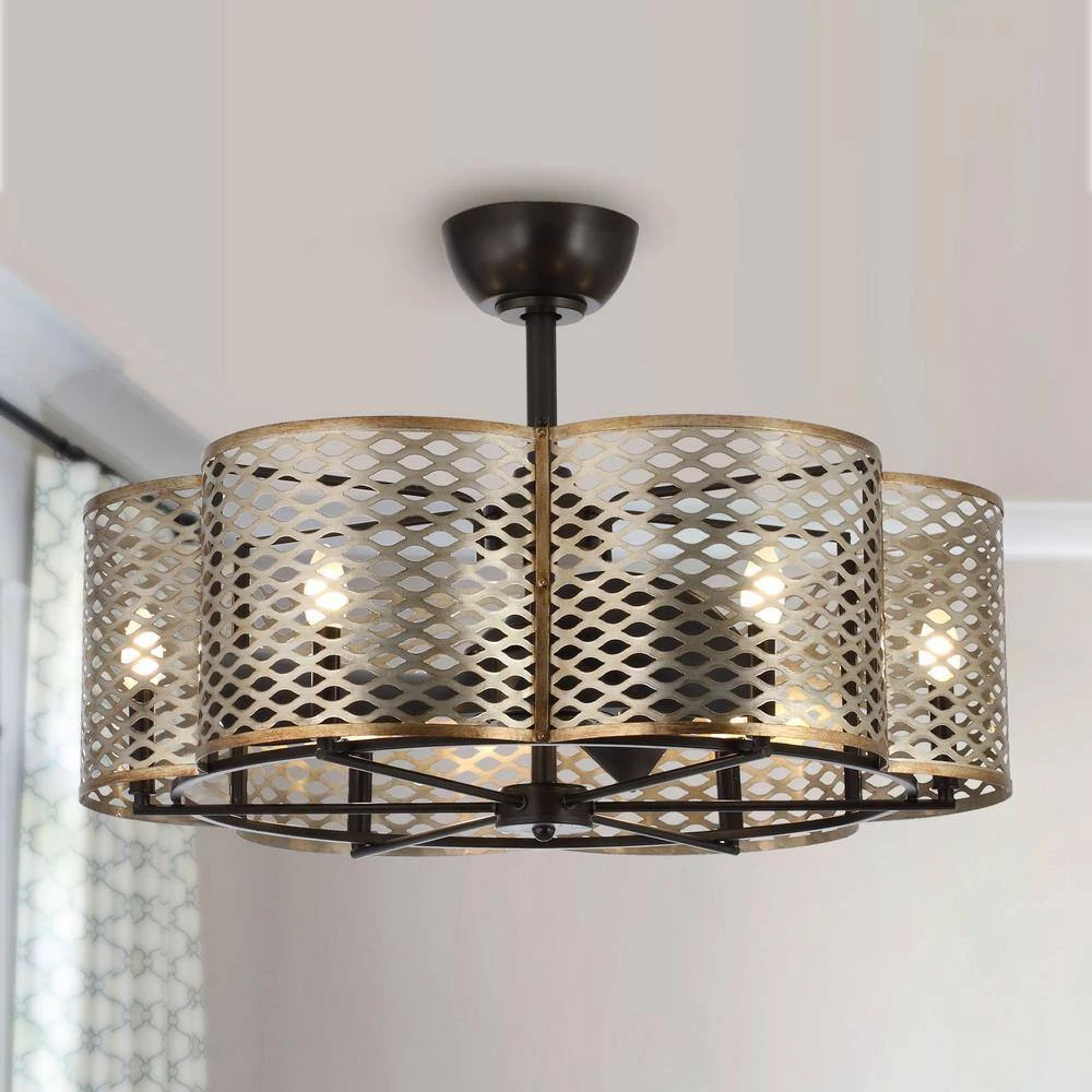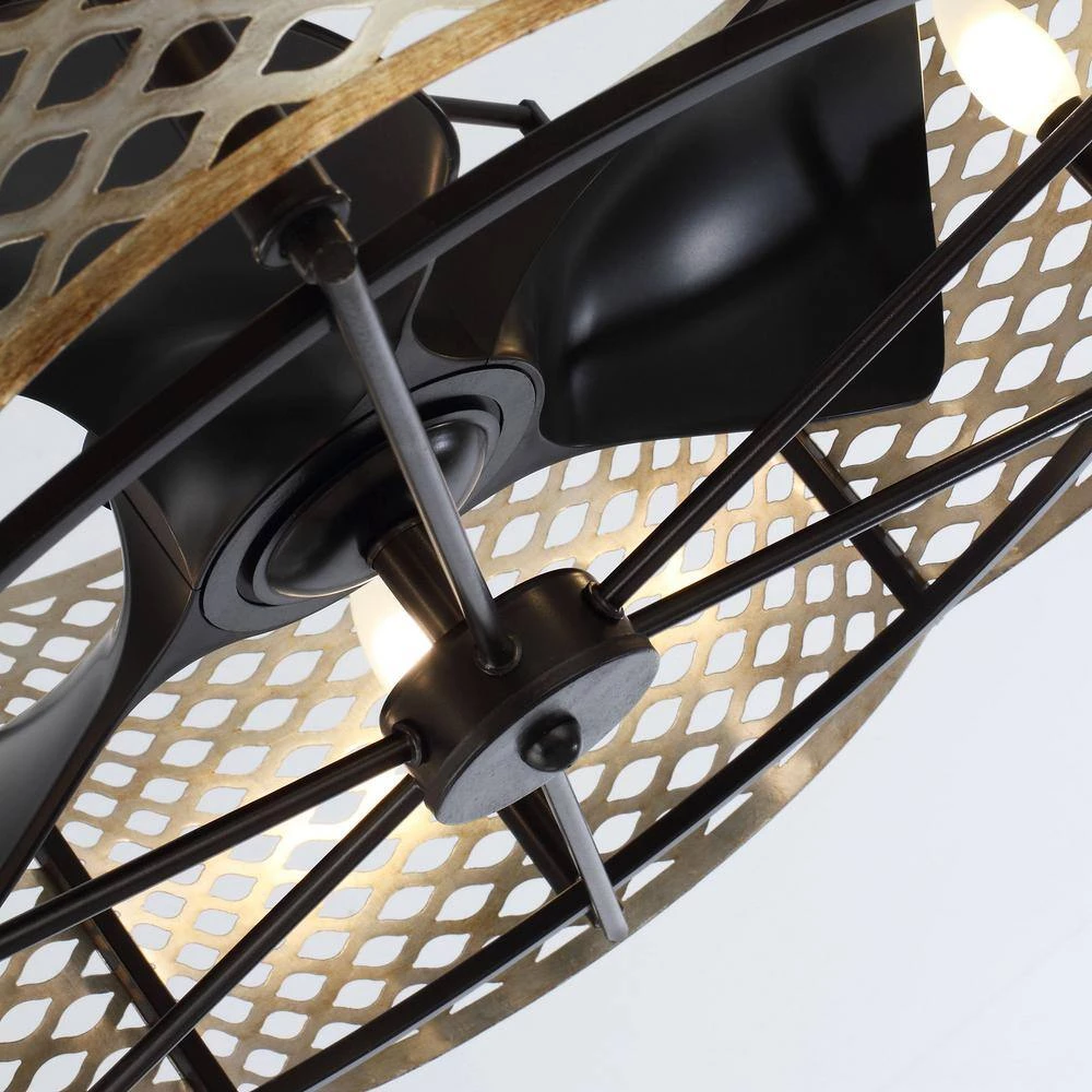 The 31 in. Ceiling Fan offers a regal elegance to your home with its bronze finish. The six 4-Watt E12 bulbs add the finishing touch. Add airflow and illuminate any area with the modern style of this cage ceiling fan. The fandelier comes in a bronze finish, while the 3 blades feature a matching black finish and a 31 in. span. The DC motor features 6 speeds with an integral reverse function. The handy remote control provides independent turn-on and off light operation and speed control.