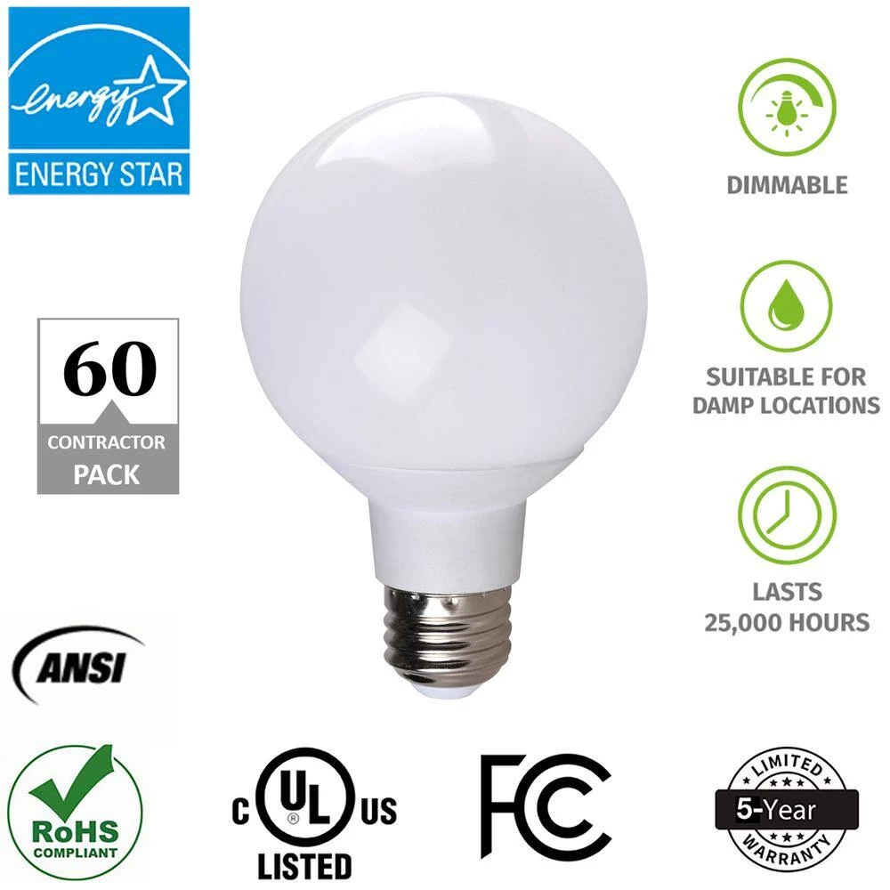 Simply Conserve by AM Conservation Group LED Light Bulbs are rigorously tested for quality and durability due to the nationwide energy efficiency programs our light bulbs are used in. Our light bulbs lasts for 25,000 hours – lasting 15 times longer than an average incandescent light bulb. This is a contractor pack of G25 Globe Dimmable LED Light Bulbs, which has 60 individual light bulbs nested in the case without individual light bulb packaging, making installation quick and easy. Save time and labor costs when you select this contractor pack for your next lighting project.