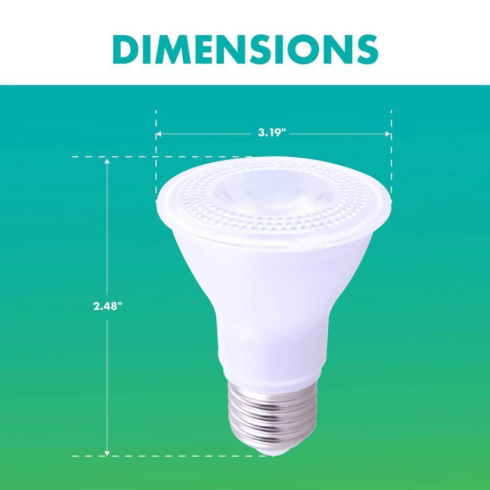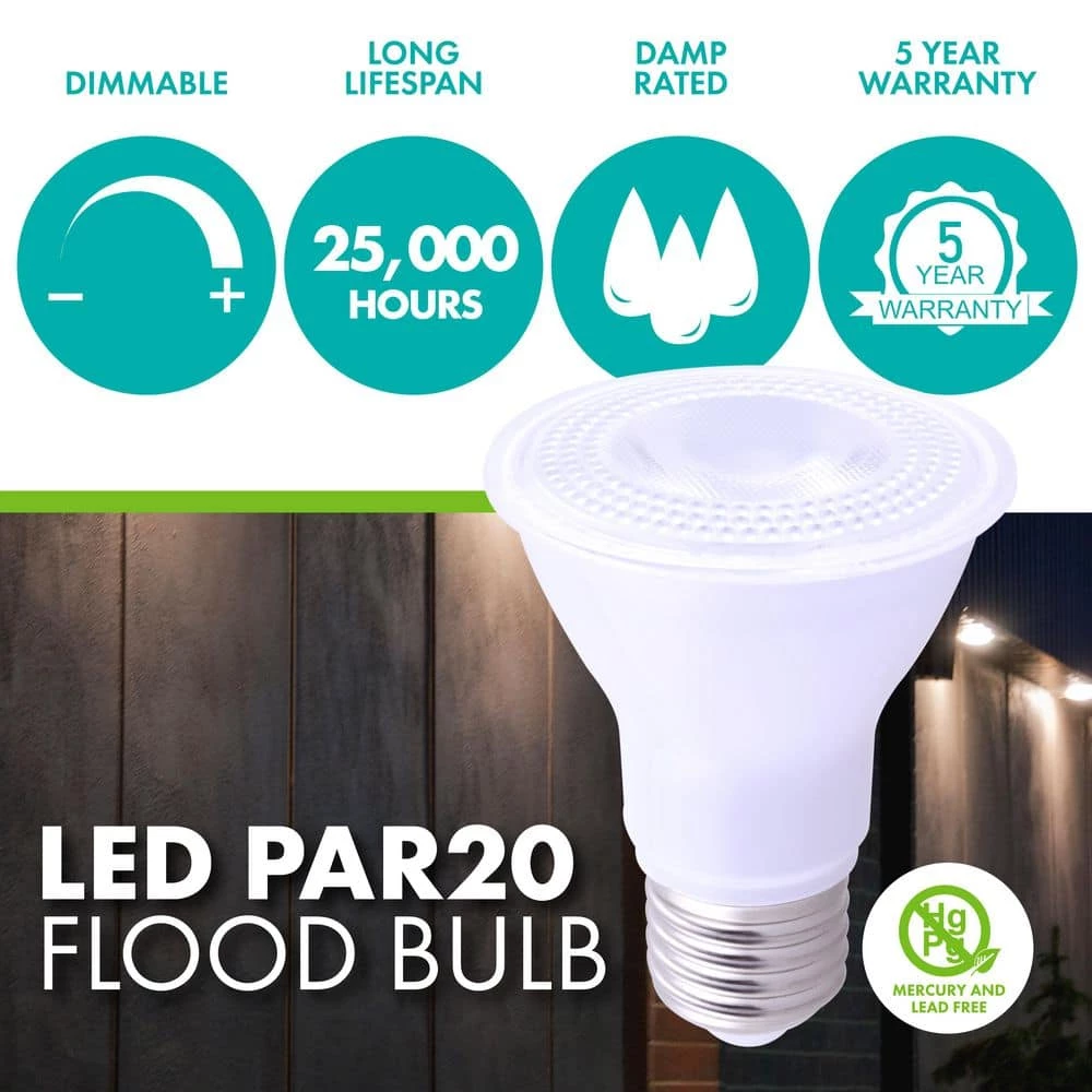 Get powerful illumination for low energy costs with our Simply Conserve Par 20 Dimmable E26 LED Light Bulb. This energy-saving light bulb is a practical indoor and outdoor LED light bulb that’s ideal for many home improvement projects. It’s great for decorative fixtures and indoor spotlights in the home and also for outdoor lighting such as an outdoor kitchen, patio, porch, balcony, or garage. You can plug it in directly into existing E26-base fixtures for easy installation. Our 7-Watt dimmable LED bulb provides the equivalent output of a 50-Watt traditional fluorescent light bulb. That means that over its lifetime, you can reap potential utility savings of 1,075 kWh. That’s significant energy cost savings for reliable lighting that lasts for an average of 25,000-hours of use. Enjoy 500 Lumens of output from a lamp that’s free of mercury and lead that come with older bulbs of the same size. It’s rated for use in both dry and wet locations so you get many seasons of reliable lighting. Overall, you get durable illumination that lasts for years, rain or shine. This Energy Star-qualified LED flood light bulb is UL and CUL-Listed, RoHs-compliant, ANSI-compliant, and comes with a 5-year warranty.