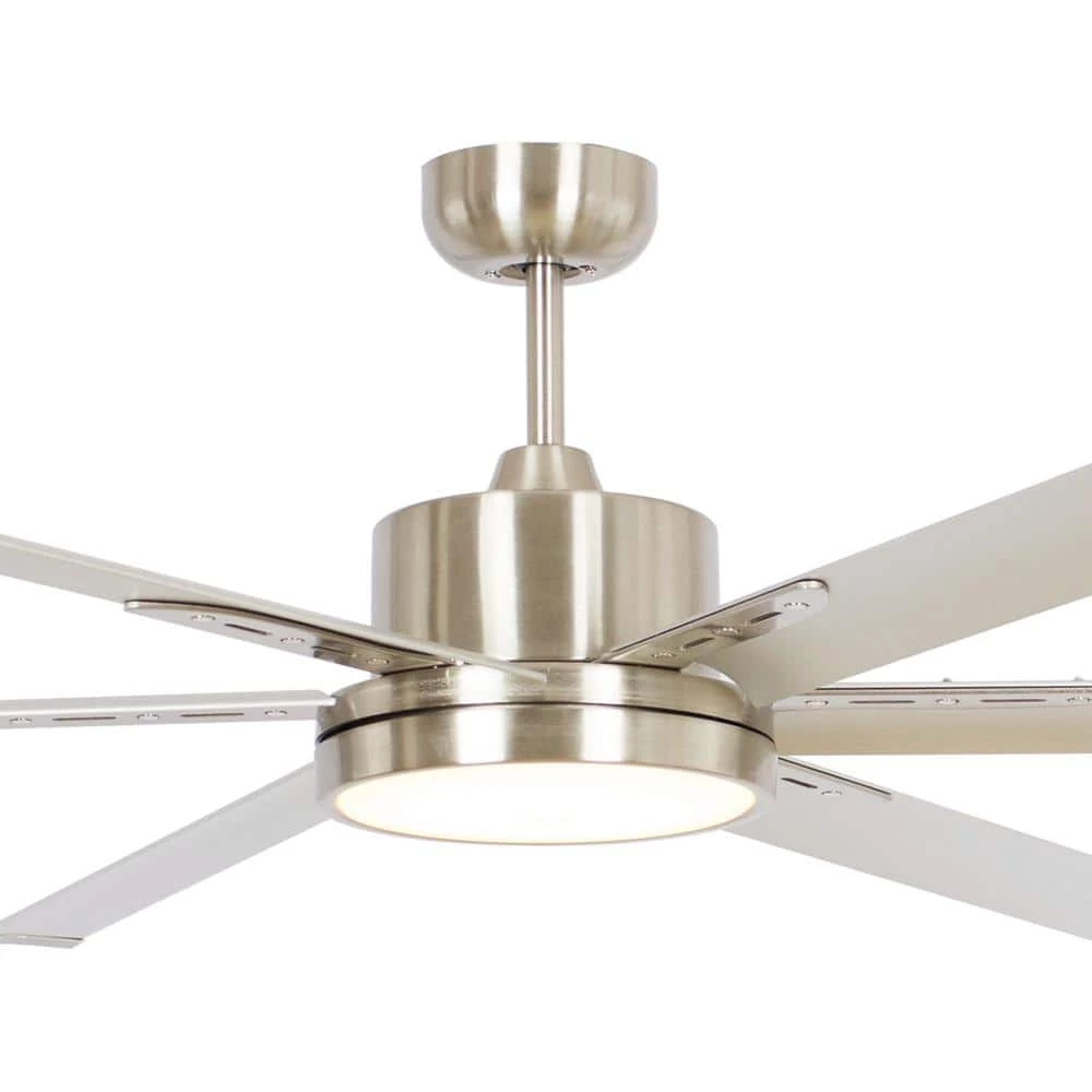 This 65 in. integrated LED brushed nickel ceiling fan with light and remote control is great for large areas or lofts. A remote-controlled, 6-speed motor fan with silver finish blades keeps your space cool or warm, making this 6-blade ceiling fan the perfect blend of functional and stylish. As an added bonus LED lighting means greater energy efficiency and more power savings. Perfect for garage, commercial, residential, any home improvement project that wants a sleek, modern look.