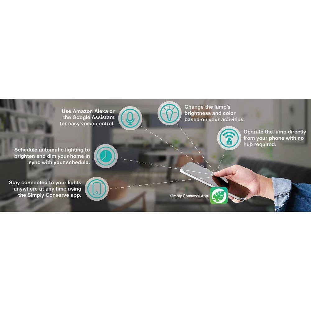 - Stay connected to your lights anywhere at any time using the Simply Conserve app