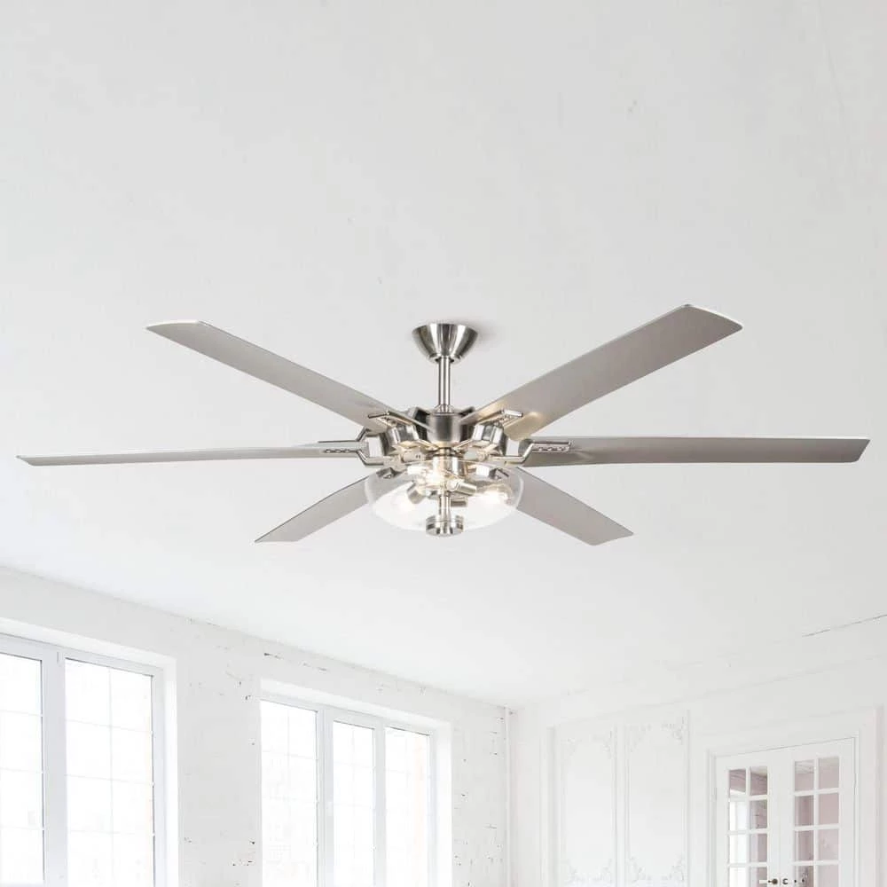 - 6 silver blades – it is a combination of a unique modern chandelier and a ceiling fan, ideal for a large room